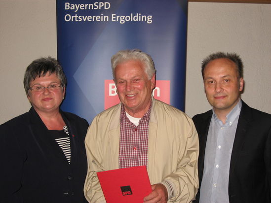 In ihrem Rechenschaftsbericht ging die Ortsvorsitzende auf die zahlreichen Aktivitäten der Partei im Gemeindeleben ein wie zum Beispiel die Teilnahme am autofreien Sonntag und am Ferienprogramm. Auch das Sommerfest im Gasthaus Proske bereicherte das gesellschaftliche Leben Ergoldings. Die politischen Schwerpunkte des vergangenen Jahres waren geprägt durch Europa- und Bundestagswahl. Leider hätten die Plakataktionen und das Verteilen einer Sonderausgabe des „Marktspiegels“ nicht den gewünschten Erfolg gebracht. Auf Ortsebene werde dagegen die SPD wahrgenommen, was das Verdienst der aktiven Mitglieder ist. Die Seniorenbeauftragte des Marktes Ergolding bedankte sich bei ihren Gemeinderatskollegen Deliano und Czichon für ihr Engagement, sowie bei ihren Vorstandskollegen Fink, Wolf und Egner für die vorbildliche Wahrnehmung ihrer Funktionen. Nachdem Kassierer Werner Wolf den Kassenbericht verlesen hatte und Kassenprüferin Gabriele Treidl die einwandfreie Kassenführung attestiert hatte wurde die Vorstandschaft entlastet. Einem Mitglied galt die besondere Aufmerksamkeit an diesem Abend. Alois Schmid wurde für 40 Jahre Parteizugehörigkeit vom Unterbezirksvorsitzenden und der Ortsvorsitzenden geehrt. Er erhielt ein kleines Geschenk, und eine Urkunde mit Nadel. Der ehemalige Personalrat war 1970 wegen der Politik Willy Brandts in die SPD eingetreten und freut sich, dass jetzt auch sein Enkel diesen Schritt getan hat. Harald Unfried informierte mit einem Referat die Teilnehmer über die von Schwarz-Gelb geplante Kopfpauschale in der Krankenversicherung. Die Mehrheit der Bundesbürger lehne die Kopfpauschale ab, sei sie doch ungerecht und unbezahlbar. Sie bedeute das Ende der Familienversicherung wobei so wichtige Aspekte wie Belastungsgrenze und Sozialausgleich noch nicht klar sind. Die Frage sei, welche Steuer erhöht wird. Wäre es die Mehrwertsteuer, so würden viele den eigenen Sozialausgleich selber bezahlen.